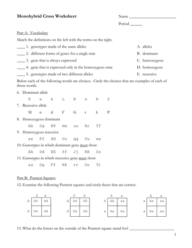 Monohybrid Cross Worksheet Quizlet