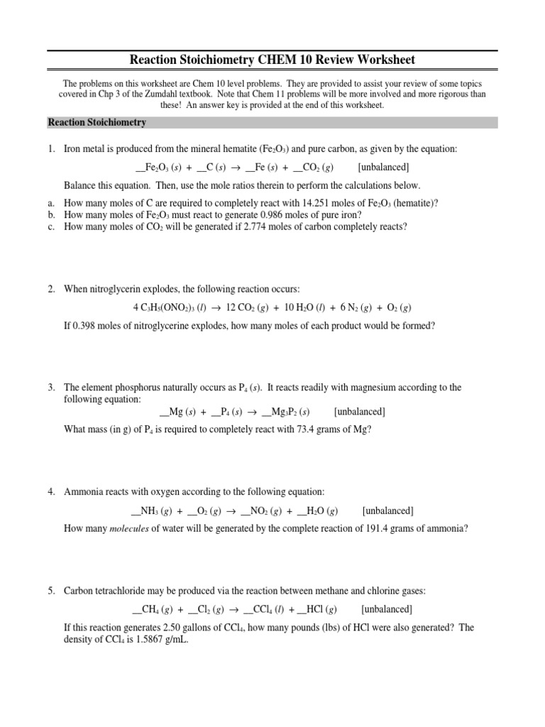 Basic introduction mole to mole grams to grams mole ratio practice to limiting reactant and excess. Chapter 9 Review Stoichiometry Section 1 Answer Key chemistry-section-1-review-stoichiometry-answers 1. Chemistry Worksheet on Stoichiometry Mixed Review Assume all reactions go to completion.